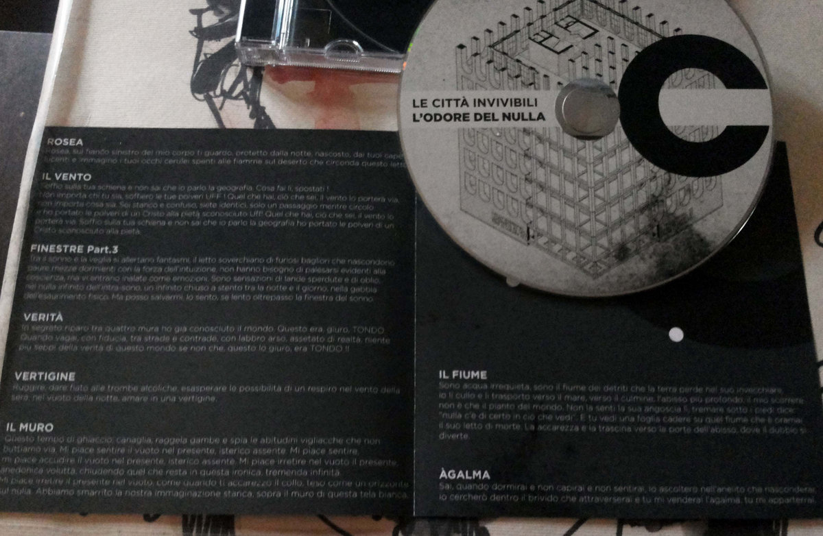 Certamente con un simile nome non ci si può aspettare musica leggera e di facile fruizione. "L'odore del nulla", nuovo lavoro del progetto Le Città Invivibili, è un plumbeo muro sonoro dove protagonista è lo sferragliante basso, assieme a chitarre distorte e spesso dissonanti, infatti stiamo navigando nelle acque malsane del noise rock, come non se ne sentiva dai primi anni del millennio. La personalità disturbata del progetto musicale emerge nei passaggi più duri e taglienti come verso la fine del secondo pezzo "Il vento". Le voci, alternate tra quelle di Pasquale e Simonetta (i due fondatori e membri fissi), sono mantenute molto dentro il mix e spesso sono sommerse dagli strumenti e le parole si percepiscono a fatica. L'effetto è senz'altro voluto e programmatico, anche perché i brani sono per la maggior parte del tempo strumentali e la voce svolge funzione narrativa. Inoltre in "Vertigine", prima che il basso venga percosso con sorprendente brutalità, il sospiro iniziale dice (se non mi sbaglio): "Fuggire, dare fiato, ali crude alcoliche, esasperare l'impossibilità di un respiro, ahhh". Quindi anche quando i testi si fanno intelligibili, ciò che apprendiamo non è edificante: si affrontano le oscurità della società contemporanea, priva di identità e di prospettive; ma senza la ricerca retorica di una qualche soluzione o rivoluzione. Semplicemente si descrive la percezione della realtà, dal punto di vista sociale ed ambientale, come ad esempio nel suggestivo pezzo in 5/4 "Il fiume": "Sono il fiume dei detriti che la Terra perde nel suo invecchiare (...) il mio scorrere non è che il pianto del mondo". La responsabilità umana nei confronti della natura è richiamata ne "Il muro": "Le nostre abitudini vigliacche che non buttiamo via". La voce di Simonetta in "Verità", così urlata, fa ricordare un po' quelle voci riottose che si sentono nel digital hardcore degli Atari Teenage Riot, invece in "Finestre parte III" Pasquale opta per un parlato. Surreale la scelta di inserire talvolta, all'interno di queste barriere rumorose, delle parti per tromba, come in "Rosea", che sanno di resistenza umana all'atmosfera polverosa e post-apocalittica generata da chitarra basso e loop di batteria. Il brano di chiusura "Àgalma" presenta una melodia cantata da Pasquale: "Sai, quando dormirai e non capirai io ascolterò, nell'anelito che nasconderai, io cercherò il tuo brivido che attraverserai." Curioso il titolo: àgalma è una parola molto significativa che gli antichi greci usavano per riferirsi sia ad un simulacro della divinità (una statuetta, un tesoro, un oggetto di culto), sia al desiderio scaturito dall'immaginario. E' un concetto che al giorno d'oggi è utilizzato e banalizzato nel commercio, e corrisponde a quel desiderio e quella venerazione che i pubblicitari cercano di ottenere per far acquistare prodotti anche inutili, ai quali però i consumatori attribuiscono un valore psicologico, irrazionale. Inserire nel pezzo di chiusura un simile concetto, la ricerca quasi feticistica di un qualcosa a cui essere devoti, dopo un intero album che trasforma in suoni la totale negazione nichilista di qualsivoglia valore, è una sberla critica non indifferente! Le Città Invivibili si confermano, come nell'Ep precedente, un posto non adatto ai cuori teneri, ma anche una bella sfida per i più impavidi; sfida che, una volta vinta, lascia piuttosto soddisfatti.