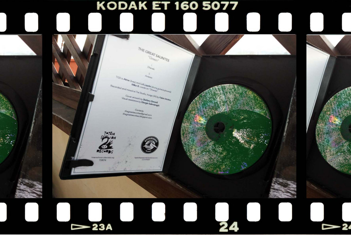 The Great Saunites vuol dire anzitutto basso più batteria. Om (accenni), reiterazione e pesantezza nella prima traccia “Dhaneb”: in pratica qui ho di fronte il duo inscalfibile che ho imparato ad apprezzare. Maggiore dinamismo in “Antares”, che ha un andamento in qualche modo ascensionale a renderla interessante, per questo non è casuale che qualcuno ci abbia visto gli ultimi Swans: in un certo senso è stato bravo a pensarci, ma la testa va più facilmente alla psichedelia degli anni che furono, del resto lo suggerisce il percorso dei Saunites finora e anche in sede di presentazione di Green si dice questo