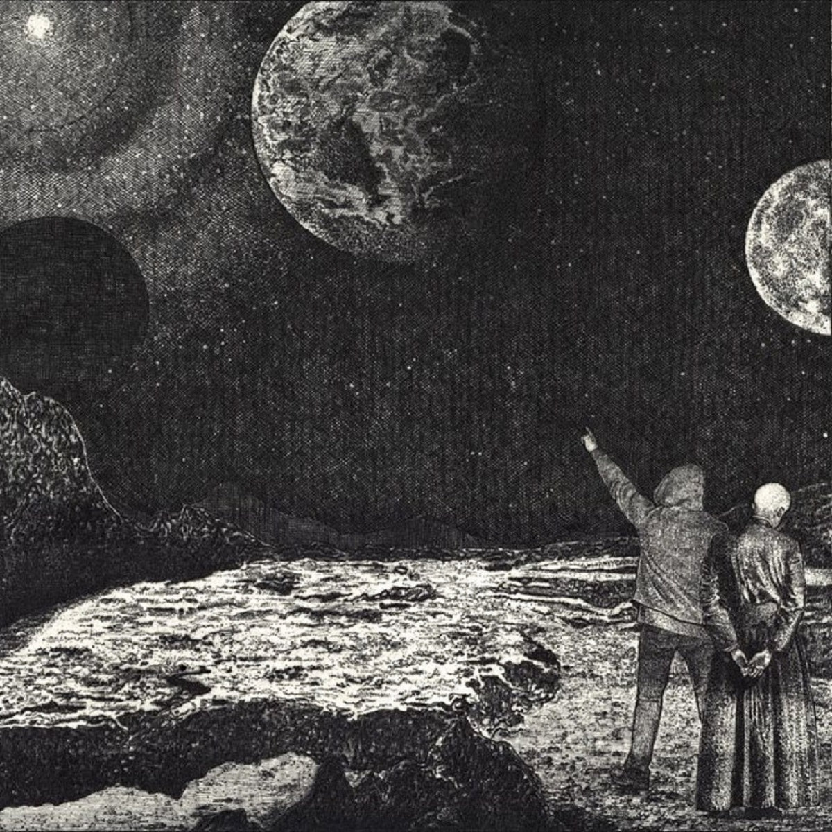 L’attacco di questo nuovo lavoro lascia poco spazio a dubbi o problemi di collocazione: basso grasso, distorto e rotondo a tirare le fila e batteria in midtempo che ci catapulta indietro nel tempo agli esordi targati Om e prima ancora Sleep, ovvero la lezione sabbathiana rallentata e inselvatichita da anni e anni di desert sound, Kyuss e progenie tutta, ipnosi da funghi allucinogeni, volate di erba buonissima per paradisi artificiali in terra. Unite a queste coordinate ideologiche prima ancora che sonore, un certo gusto per la reiterazione – dopotutto due suite come Dhaneb e Antares da più di venti minuti l’una dicono molto dell’approccio ripetitivo e del gusto per la ciclicità ipnotica – e avrete esattamente tutto ciò che si ritrova in questo passo che cromaticamente degrada dal “nero” del primo volume verso un “verde” che ci piace immaginare non troppo torvo, quanto brillante come una cima di marijuana. Space-acid-rock dal peso specifico elevatissimo e sviluppato in the name of ganja, ma con un occhio di riguardo per il viaggione cosmico e la perdita della coscienza.