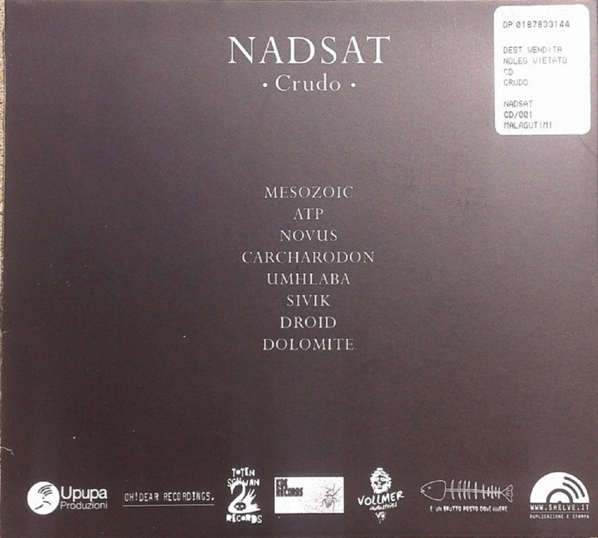 "..Dopo il convincente EP d’esordio Terminus, il duo emiliano Nadsat, chitarra e batteria – i bassisti, si sa, sono cosa rarissima – è tornato con un nuovo lavoro, Crudo. Le coordinate sono più o meno le stesse, quelle di un math inquieto e selvaggio. Ciò che è cambiato è l’approccio. Se il precedente lavoro era legato a filo doppio a suggestioni sci fi, qui riecheggianti al più solo nell’altissima tensione di “ATP”, questo Crudo manca di ogni referente contenutistico. Allo stesso modo, se in Terminus le trame strumentali ospitavano di quando in quando comparsate di voce, adesso non ce n’è più traccia. Meno presenti infine quelle influenze che facevano capolino nel lavoro d’esordio. Di noise, psych e prog, linguaggi con cui i Nadsat avevano pure giocato, resta giusto del prog nella conclusiva “Dolomite”.....Se a tutta prima Crudo sembrerebbe null’altro che una ricerca formale, tra il serio ed il giocoso, pare invece che – alla faccia di quanto recita il comunicato stampa sul fatto che l’album non avrebbe alcun piano di lettura – alle sue spalle si stagli l’ombra di una forte teorizzazione, di un’idea, un contenuto.